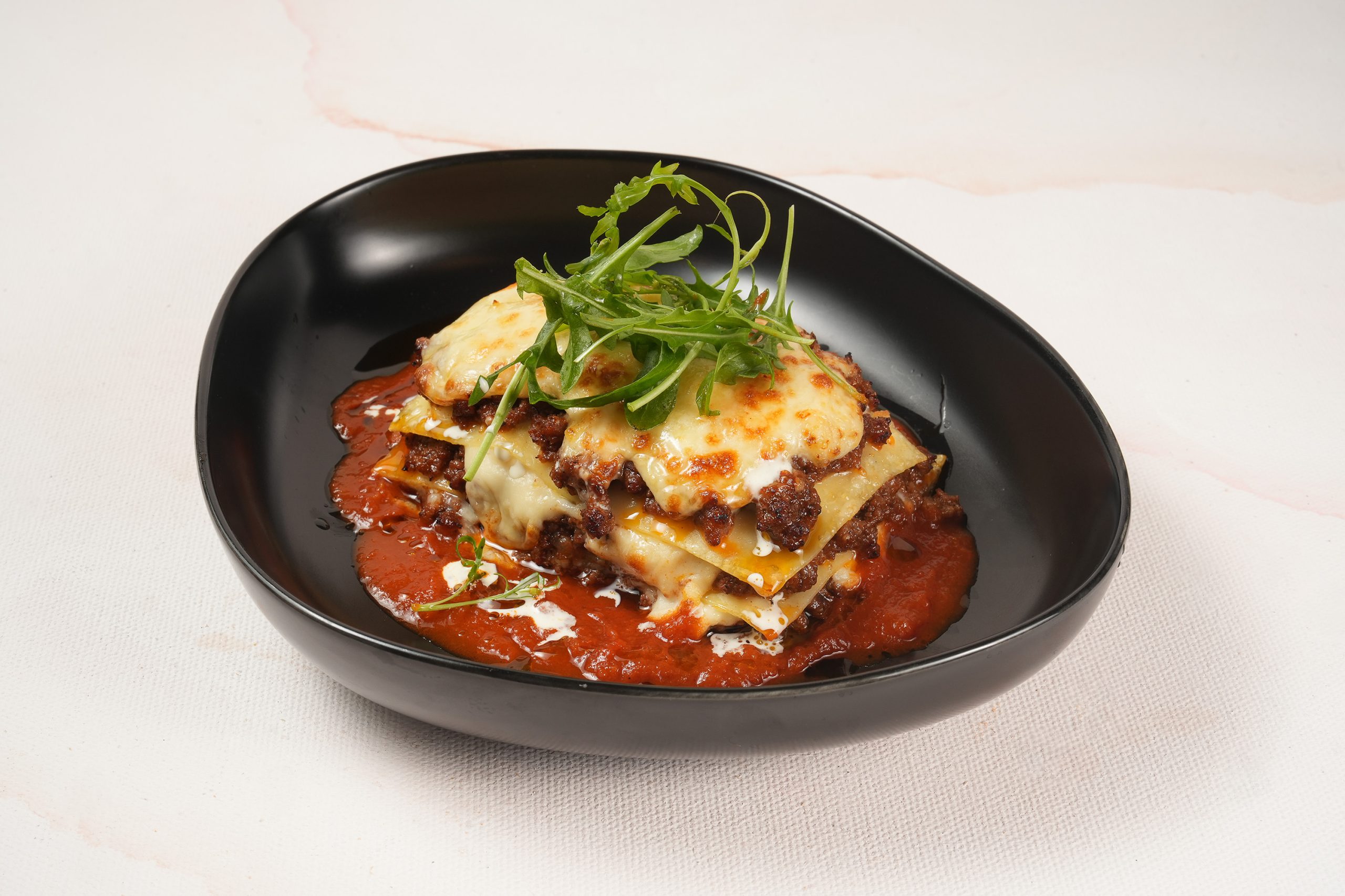 Features tender pasta sheets layered with smoky BBQ-infused beef and cheese sauce mixture, tomato sauce and topped with a creamy cheese sauce & melted mozzarella