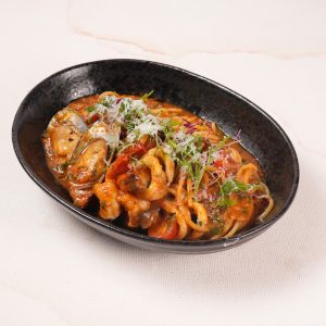 Classic mac and cheese baked with hearty wagyu pulled beef and rich cheese