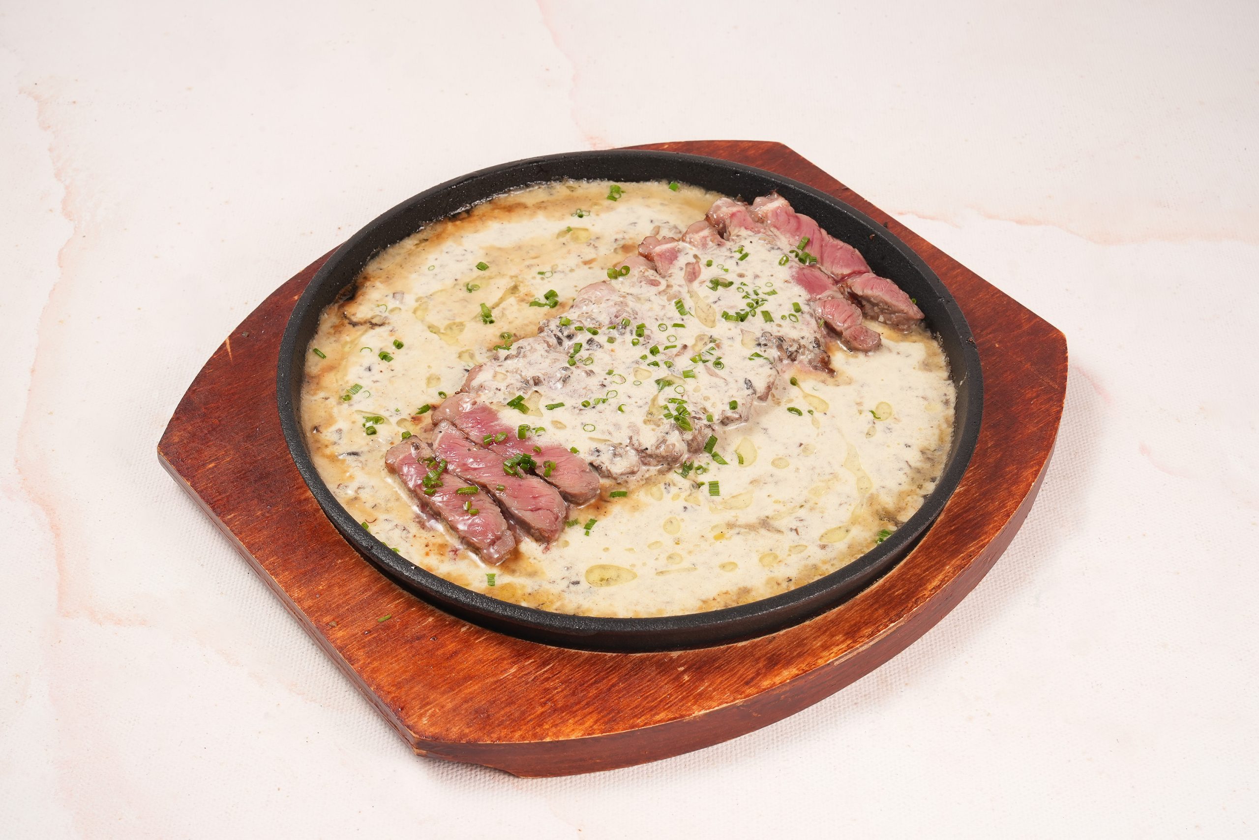 100% pure, succulent sizzling-grilled Black Angus beef striploin with creamy truffle sauce and finished with sprinkle of sliced fresh chives and white truffle oil