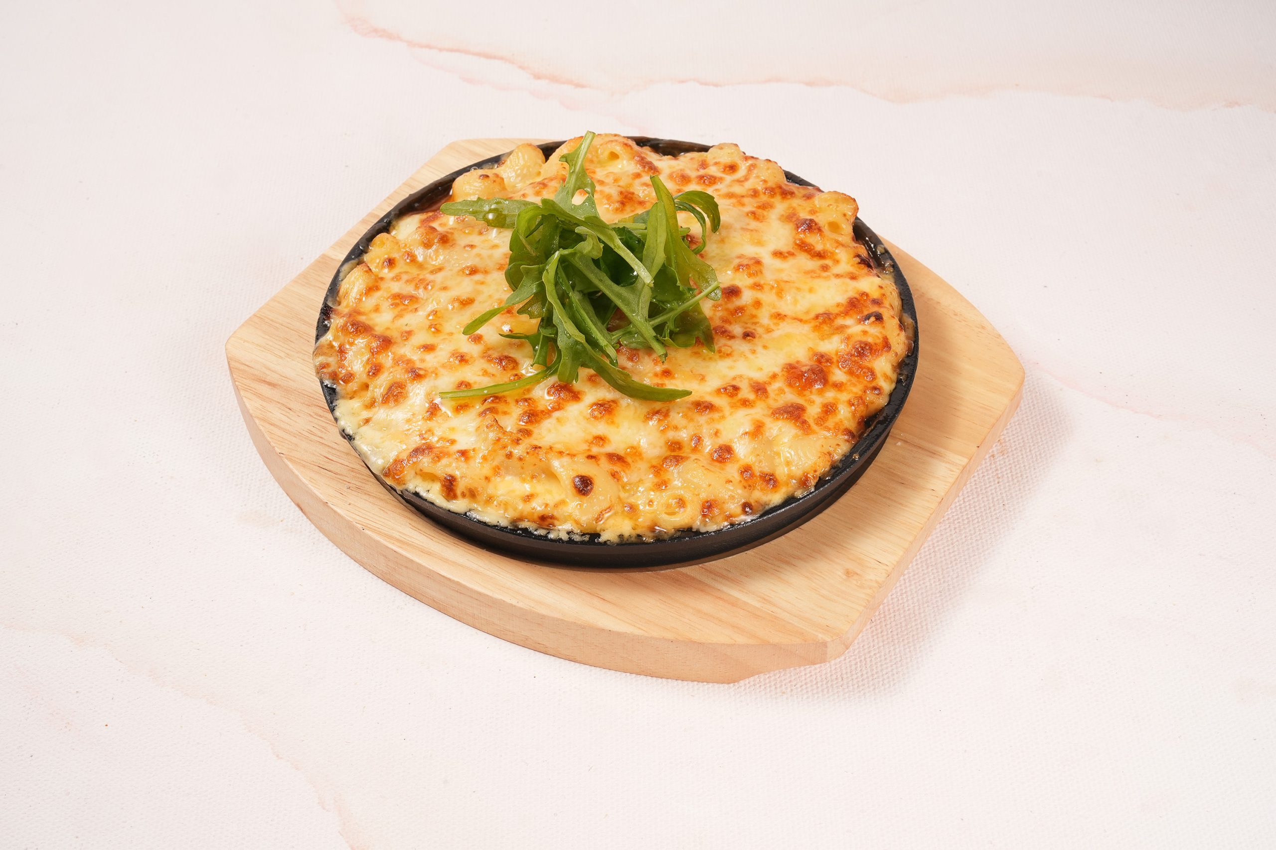 Classic mac and cheese baked with hearty wagyu pulled beef and rich cheese