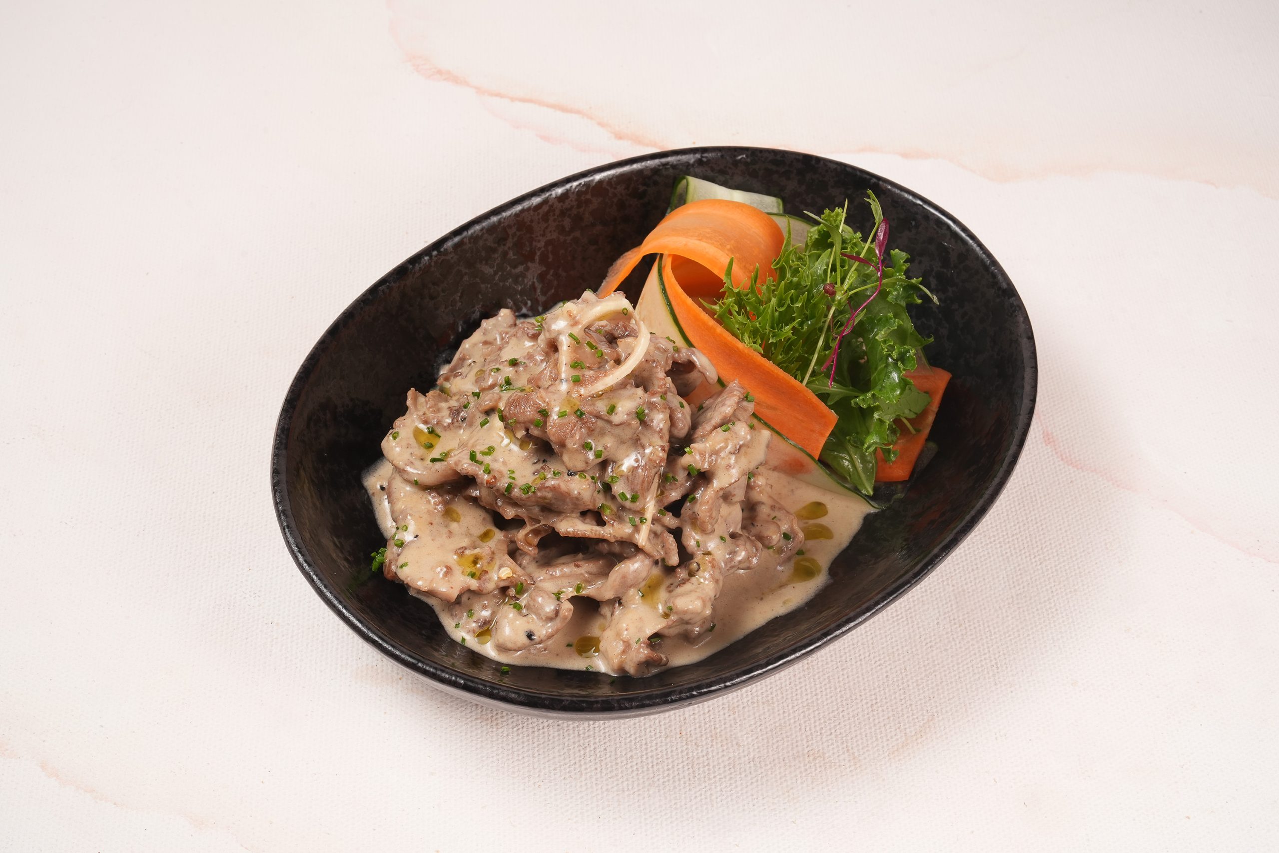 Tender, creamy and thinly sliced lamb accompanied by a fresh mesclun salad with carrot and cucumber ribbon