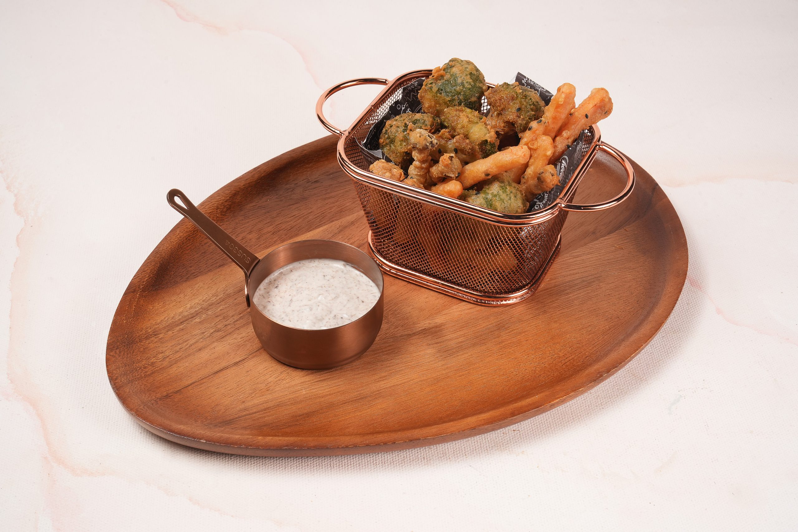 Crispy little bites made with broccoli, mushrooms, and carrots, sprinkled with cheesy goodness, served with truffle mayo dip on the side